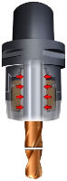 不僅是刀片的材質和槽形,而且刀具夾持以及夾緊的安全性和高精度也會影響生產效率。 為獲得最佳穩定性和孔質量,采用可樂滿Capto接口或CoroChuck 930夾頭。 應總是使用盡可能短的鉆頭和懸伸。