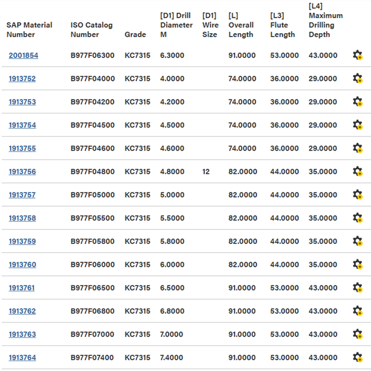 美國肯納外冷合金鉆頭B977系列鉆頭 鉆頭直徑范圍為 3–20mm