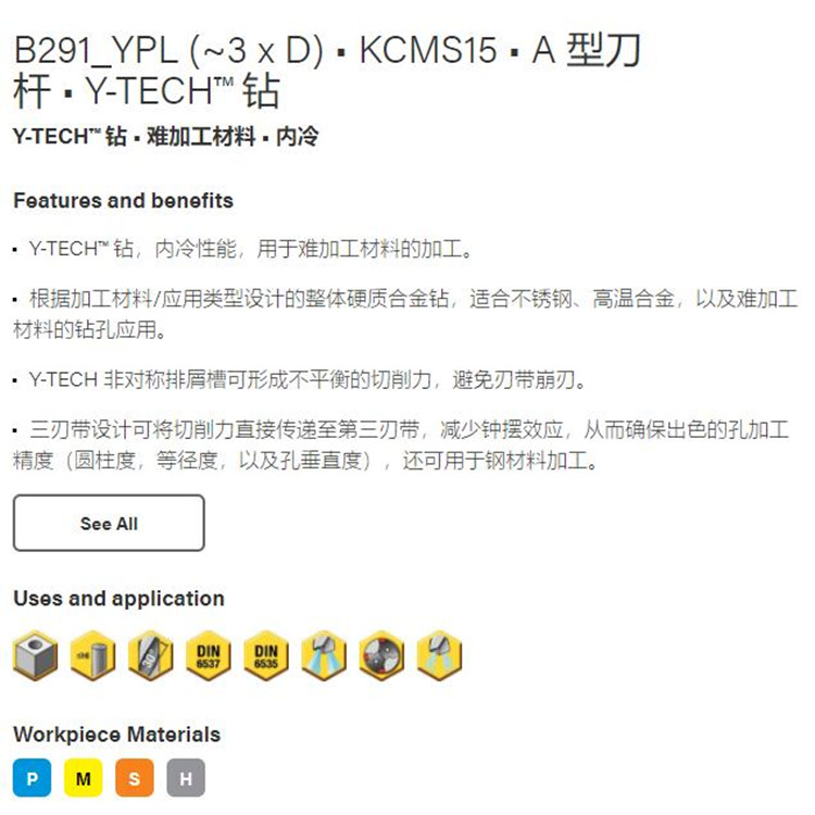 肯納刀具 肯納合金鉆頭 內冷合金鉆頭B291A06800YPL KCMS15