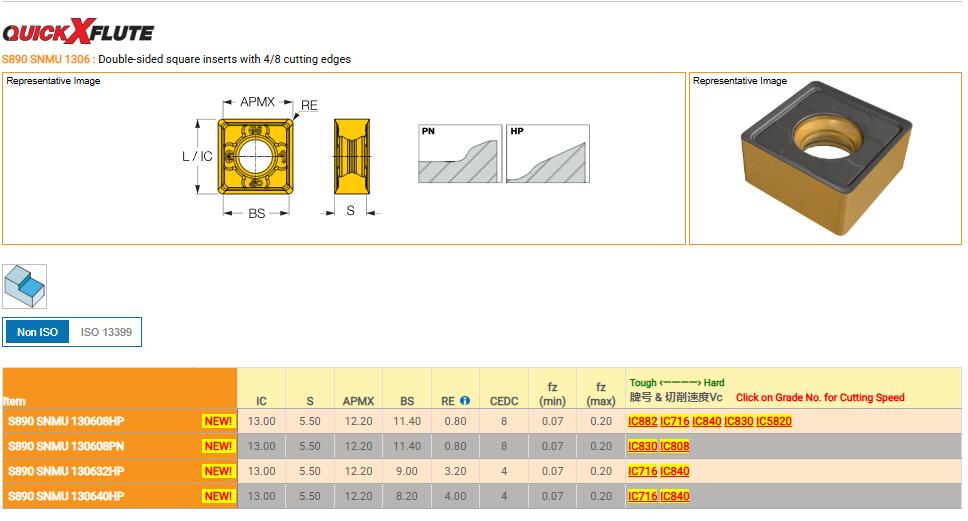 伊斯卡刀具 雙面方形銑刀片 S890 SNMU130608HP IC5820