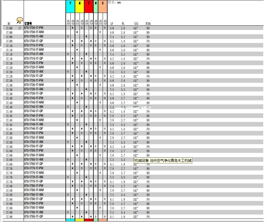 更多刀片型號: