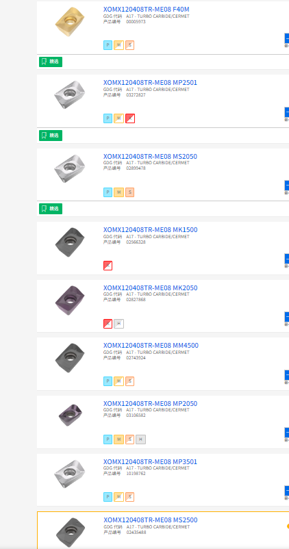 濟南山高seco銑削刀片XOMX120408TR-ME08 MS2500