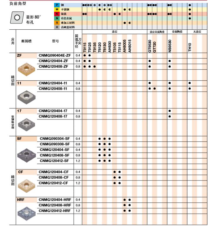 | P | T9115 | T9115 兼具耐磨性與抗崩刃性,適用于廣泛鋼件的加工領域 |
